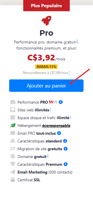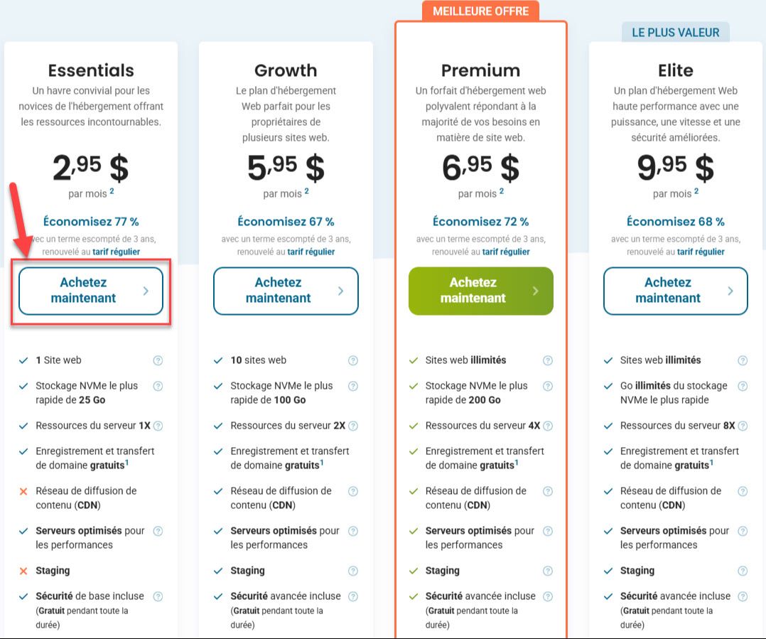 2. Choisissez le forfait Essentials à 2,95$/mois (rabais de 77% pour 3 ans).