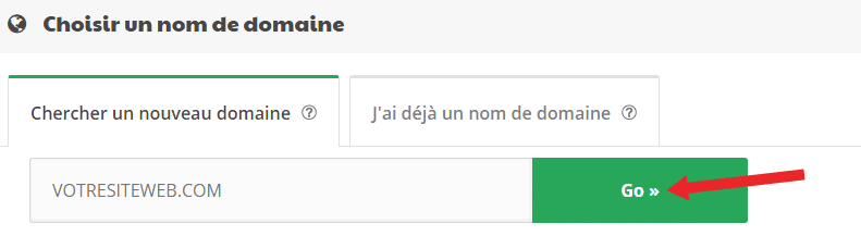 - (ou si vous en avez déjà un, sélectionnez l'option "J'ai déjà un nom de domaine", écrivez-le dans l'espace prévu à cet effet et ensuite, cliquez sur le bouton avec l'icône de la loupe). *Étapes supplémentaires sous la capture d'écran ci-dessous.